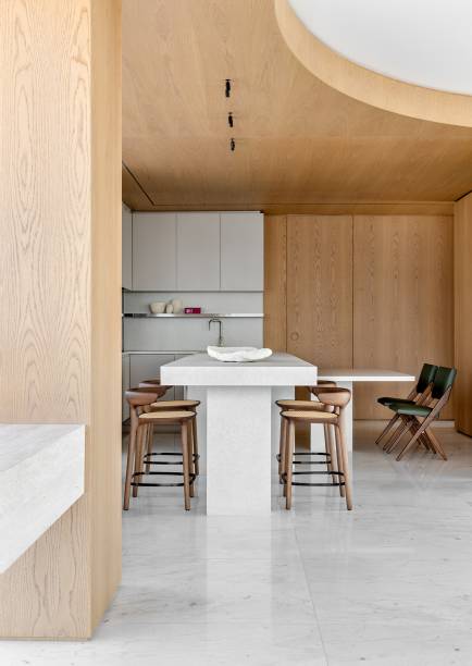 Este apartamento, projetado pelas arquitetas Carolina Rauen e Larissa Garbers, do escritório Rauen Garbers Arquitetura, oferece uma vista panorâmica de Curitiba, Paraná, com destaque para o Parque Barigui. Com 540 m², o imóvel é distribuído em dois pavimentos: a área social no piso inferior e a área íntima no superior.