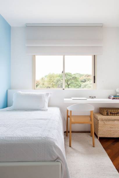 Este apartamento de 250 m², assinado pelo M Magalhães Estúdio, tem uma localização privilegiada em São Paulo: por estar em frente a um parque, pode-se ouvir o barulho dos bichos e ver o horizonte; e por estar no terceiro andar do edifício, ele se alinha exatamente na altura da copa das árvores.