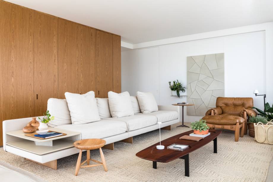 O casal também valoriza muito o design nacional e, por isso, foram selecionadas peças de renomados designers como Arthur Casas, Sérgio Rodrigues e Jader Almeida. Também foram incluídas muitas plantas naturais para dar mais vida ao apartamento.