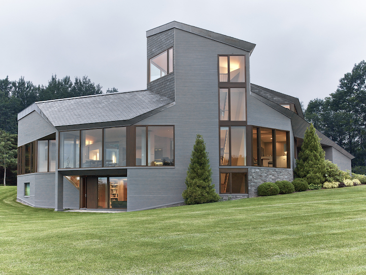 Os arquitetos do escritório Tsao & McKown criaram uma casa nas montanhas de Berkshire usando uma máxima da matemática presente em toda a natureza: a espiral de Fibonacci. Isso significa que a estrutura da casa segue o movimento espiral, criando ambientes de circulação fluida e prática. Os moradores podem subir tranquilamente pelos cômodos, começando pelas áreas de vivências do primeiro andar, até o ponto mais alto, uma torre acolhedora. Por conta dessa construção peculiar, a casa se integra perfeitamente à natureza. Com amplas janelas, todos os ambientes têm vistas diferentes e privilegiadas dos arredores rurais. O formato curioso também resultou em um quintal íntimo, que acomoda super bem jantares ao ar livre. No décor, o tema das montanhas prevalece — a construção remete às casas de fazendas tradicionais do oeste de Massachusetts. Para criar esse clima, os arquitetos usaram vários materiais, como painéis de madeira e o granito de uma pedreira próxima, para brincar com texturas. A intenção é que cada revestimento envelheça de maneira diferente e crie um diálogo com a paisagem natural através do tempo.