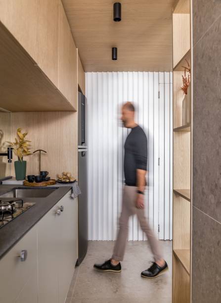 Urbano e natural: apê de 55m² aposta em marcenaria e paleta de cores leve