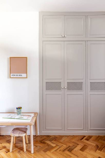 O Estúdio de Arquitetura Ana Neri escolheu uma paleta de cores clara e neutra com pontos de cor no mobiliário