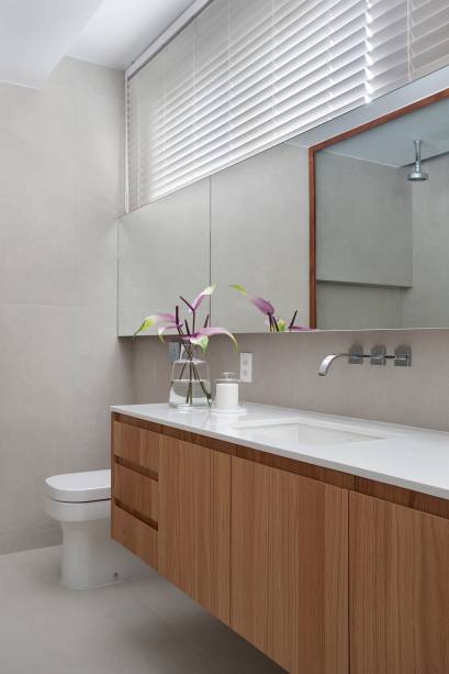 A primeira providência do escritório foi transformar os quatro quartos com banheiros separados pelo corredor em suítes, mudando as paredes de lugar e criando uma nova rede de esgoto – tudo isso foi feito sem incomodar o vizinho do andar debaixo.