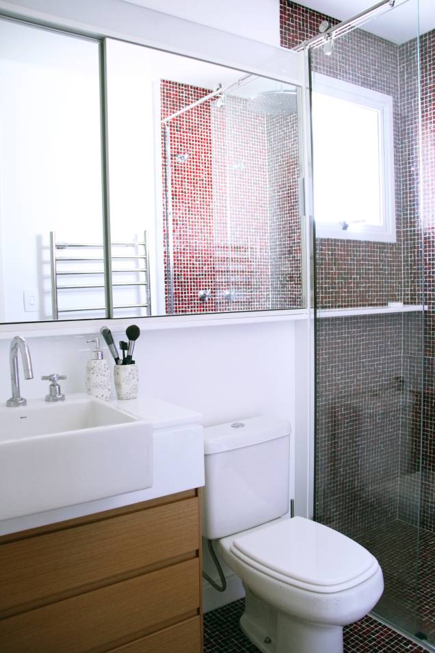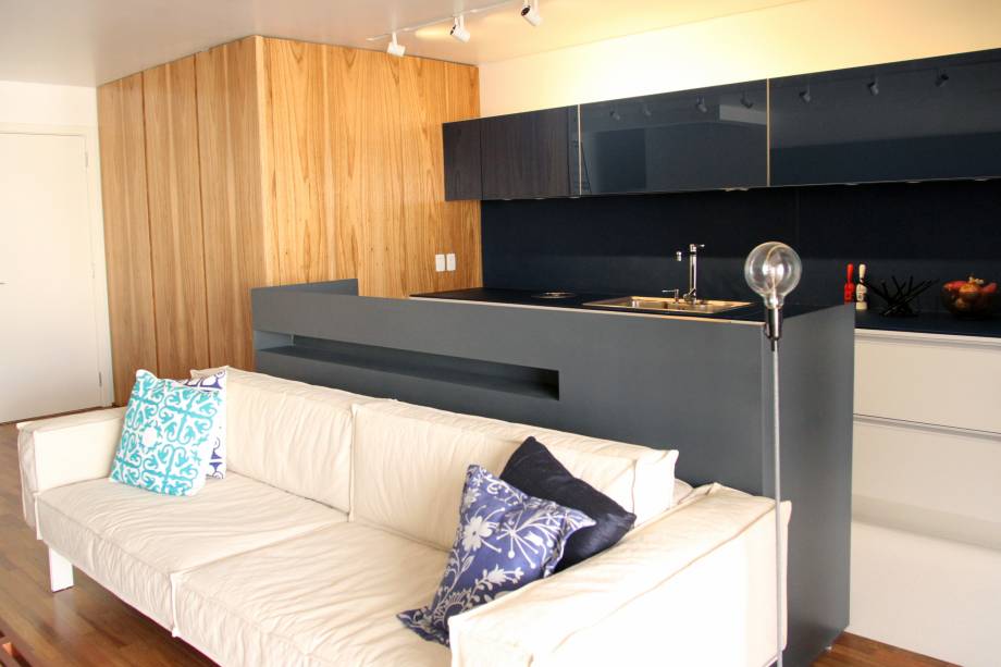 O imóvel, que se localiza no bairro do Brooklin (São Paulo), mede 80 m². Com as mudanças sugeridas pelos profissionais, as áreas sociais foram integradas a partir da demolição de paredes e as esquadrias – que fragmentavam o espaço – foram removidas.