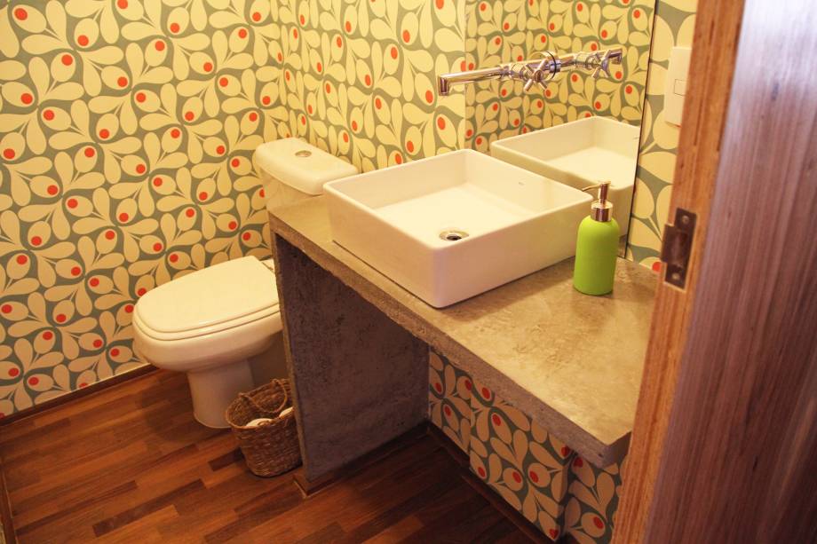 Para o décor, foi escolhida uma paleta de cores que combina tons naturais – como o da madeira – com cores mais fortes, como o amarelo e o azul.