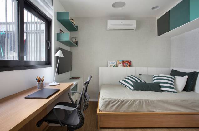 Para isso, algumas modificações foram feitas. A suíte do filho mais velho, por exemplo, teve o banheiro voltado para a circulação, passando assim a atender às três crianças.
