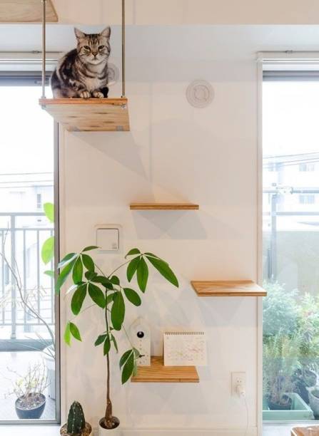 Os gatos costumam ser bons exploradores. Móveis funcionais que permitam essa dinâmica dos bichinhos são super bem-vindos! Aproveite prateleiras e nichos para instigar a brincadeira do seu felino: