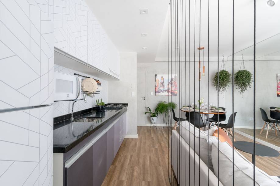 Corda náutica delimita áreas sem comprometer espaço em apê de 50 m²