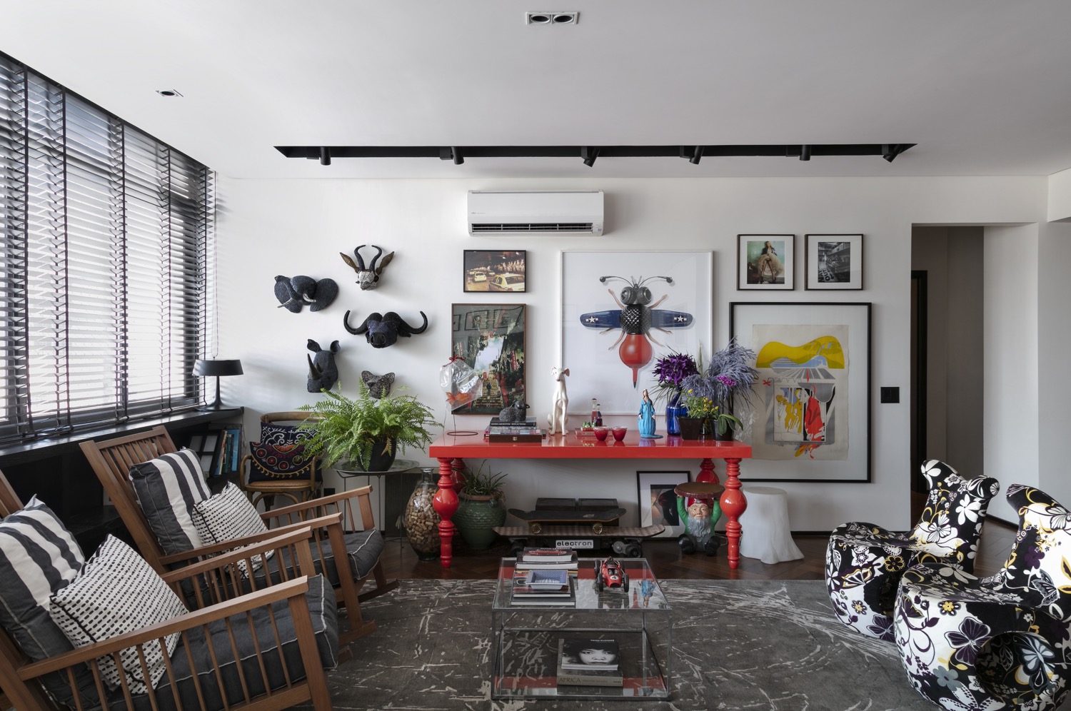 Como os moradores estavam se mudando de uma casa maior para o apartamento, eles já tinham praticamente todo o mobiliário e um belo acervo de obras de arte. “Era um verdadeiro parque de diversões! Poltronas da Moroso, cadeiras de balanço da Gervasoni, mesa de jantar do Guilherme Torres, além de muitos quadros”, revela a arquiteta.