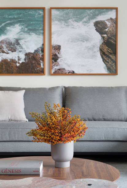 Toda essa área de convivência ganhou uma decoração contemporânea, com predomínio do branco, cinza e madeira. Destaque para o painel de carvalho americano, que se estende desde a entrada até a parede lateral do estar. Outro revestimento relevante usado neste local social foi o acabamento 3D, na parede da TV.