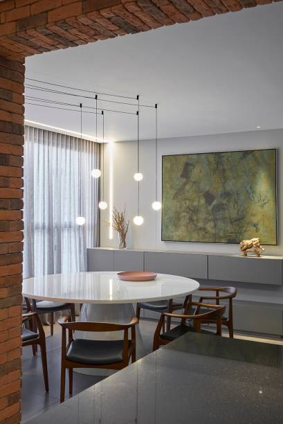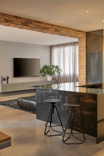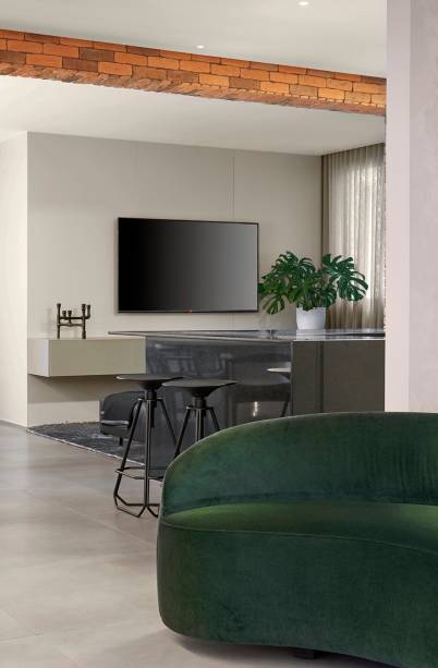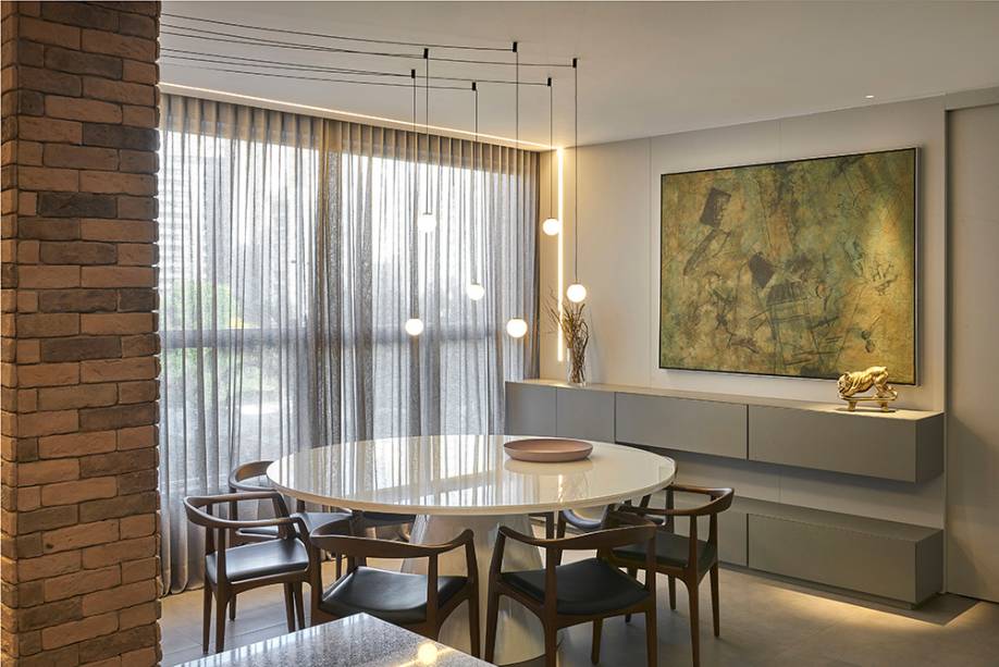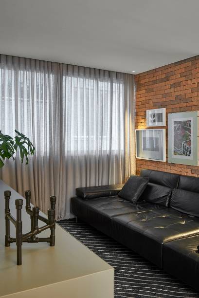 Parede de tijolos aquece decoração de apartamento de 150 m²