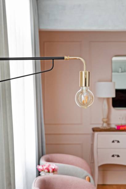 O cômodo de 37 m², que antes possuía um décor mais sóbrio, ganhou um conceito romântico – estilo parisien chic –, com tons de rosa e cinza.