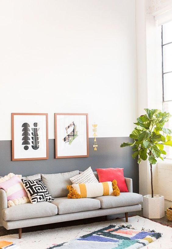 Pintar a parede é sempre uma decisão difícil – um comprometimento e tanto e pode ser que a tinta não fique como imaginamos ou que não combine tanto com as peças e móveis que já temos em casa. É aí que entram as paredes pintadas pela metade, ou ‘half-painted walls’, em inglês.