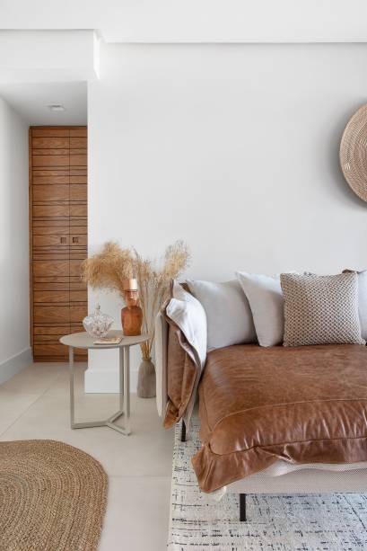 A textura pode não ser a primeira coisa que vem à mente quando você pensa em aconchego. No entanto, introduzir em seu espaço residencial é uma ótima maneira de acrescentar interesse a um design minimalista. Você pode fazer isso utilizando materiais quentes e naturais, como madeira e lã, ou incluir diferentes tipos de flores para um pequeno toque de cor.