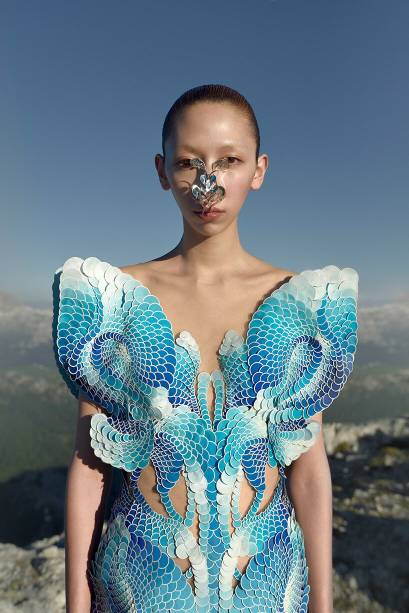 Iris Van Herpen colaborou com a Parley For The Ocean para a edição de 2021 da semana de alta-costura de Paris. A designer holandesa desenhou cinco vestidos feitos inteiramente de detritos marinhos reciclados.