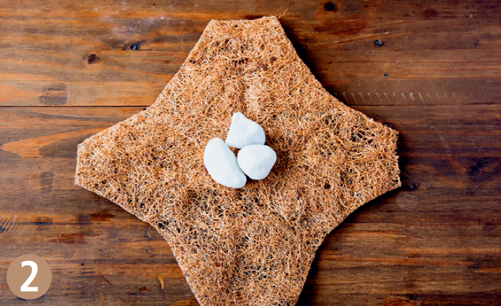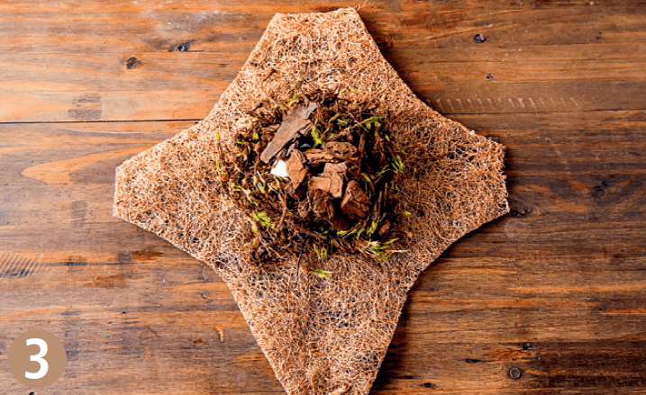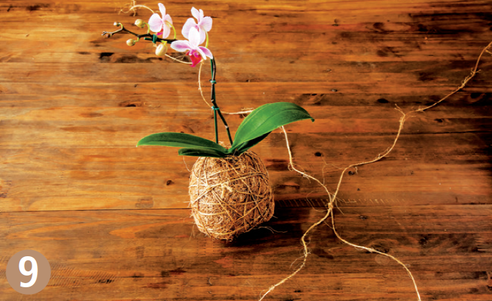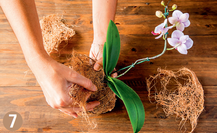 Para garantir que o substrato se mantenha unido, utilize um fio de sisal, material natural e resistente. Envolva a bola de substrato com o fio, passando por todos os lados, até que fique firme e com o formato desejado. Finalize dando um nó nas pontas do fio.