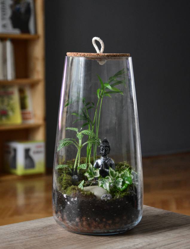 Já para os terrários fechados, o ideal é que sejam plantas que gostem de umidade, porque elas estarão em um ambiente fechado em que o ciclo da água ocorrerá a todo momento ali dentro.