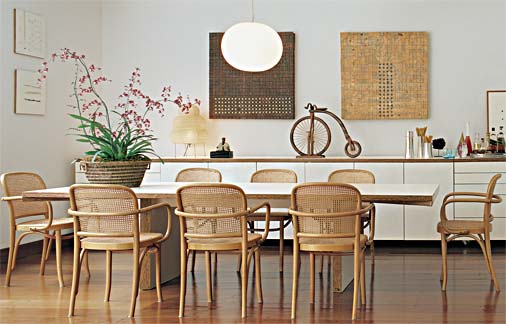 A sala de jantar merece um cuidado especial na hora de ser elaborada. Além dos conjuntos que podem ser comprados prontos, é interessante notar como se combinam mesas, cadeiras e lustres, que devem formar uma composição afinada de acordo com o estilo da casa. Estas 23 salas de jantar mostram como fazer isso e dão dicas de como você pode montar a sua. E começamos com uma delas: reserve, ao redor da mesa, ao menos 1 m de espaço para a movimentação das cadeiras e a circulação dos convivas. E para completar, que tal receber seus convidados com louças especiais? Dê uma olhada em nossa galeria com acessórios inspirados nas flores.