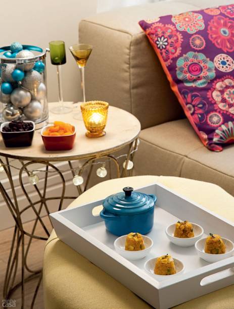 Quem disse que sala pequena é desculpa para deixar de abrir as portas de casa no fim do ano? O ambiente que montamos neste mês está aí para provar o contrário: apesar de ter medidas enxutas, ele é muitíssimo bem-preparado para receber. “O segredo está na escolha de móveis adequados para a planta. Não adianta ter uma mesa de oito lugares para acomodar todo mundo, se as pessoas não conseguem se mover em torno dela”, defende a arquiteta paulistana Rachel Nakata, autora do projeto. Peças versáteis e fáceis de arrastar de lá para cá são essenciais. A base neutra estimula o uso de acessórios coloridos, que mudam conforme a ocasião. Na hora da festa, o importante é sobrar espaço para circulação, prever diferentes cantos de conversa e, claro, deixar comidas e bebidas ao alcance de todos, o que facilita bastante o trabalho dos anfitriões – nossa festa, por sinal, tem um cardápio delicioso, assinado pela personal chef Luiza Zaidan, também da capital paulista.