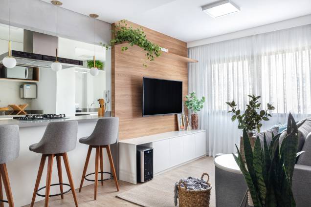 O projeto, assinado pela RMV Interiores, integrou os espaços e criou uma decoração leve e cheia de frescor.