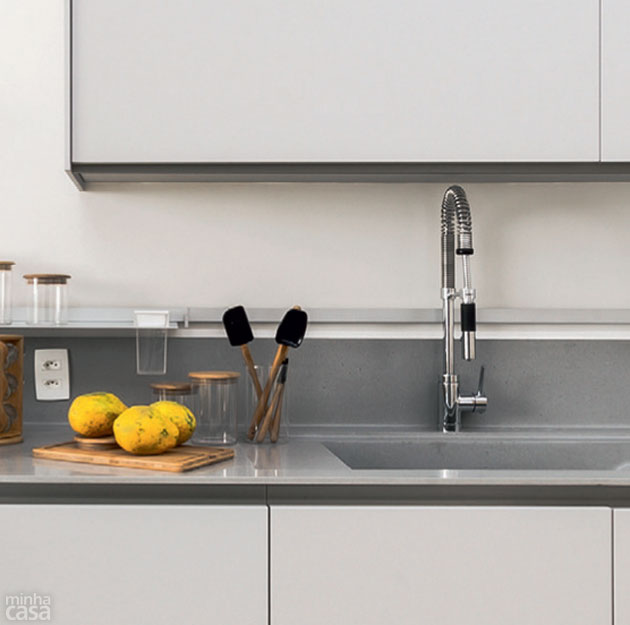 Arejadores e restritores servem para limitar a vazão de água da torneira, que pode alcançar 12 litros por minuto – daí sua importância na redução do consumo. Alguns modelos já vêm com essas pecinhas; em outros casos, é preciso comprá-las à parte. “Existem acessórios com vazão de 1,8 litro, mas são indicados apenas para lavatórios públicos, não residenciais. A fim de escolher o mais adequado, leve em conta o tipo de torneira e seu uso”, explica Osvaldo de Oliveira Jr., da área de engenheria de aplicação da Deca. Um arejador com vazão de 6 litros (ref. 4666.090), como o instalado na cozinha da Residência Sustentável, custa R$ 18,85 na Balaroti.