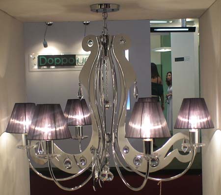 As luminárias clássicas Maria Teresa e suas múltiplas variações estavam presentes em quase todos os estandes da feira Expolux 2008.