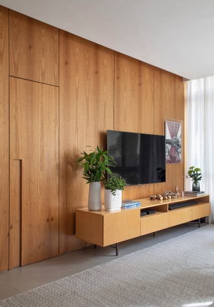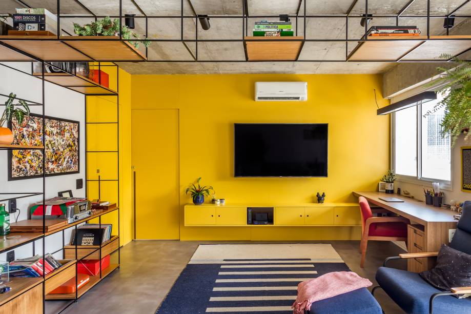 No caso do cômodo pronto não apresentar a possibilidade de camuflar os fios, o recomendado é instalar o painel – que ocupa toda a parede e deixa o ambiente mais harmônico.