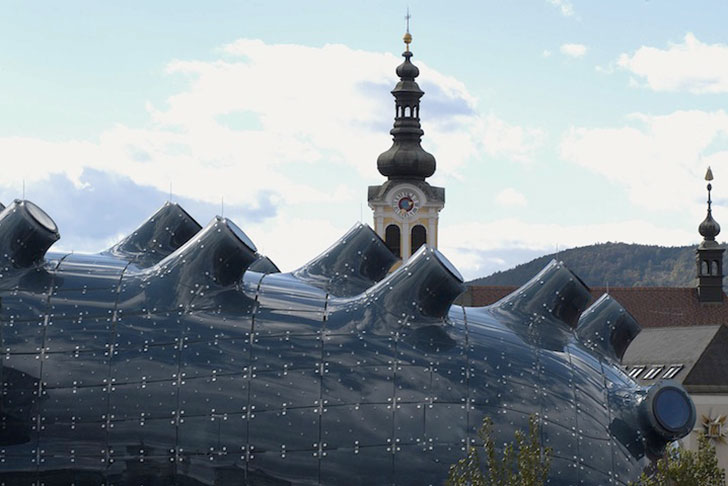 Quem passar pela cidade de Graz, na Áustria, pode se deparar com uma construção estranha, parecida com um corpo alienígena azul no meio da tradicional arquitetura austríaca. Trata-se na verdade do inovador museu de arte contemporânea desenhado por Sir Peter Cook e Colin Fournier, chamado de Kunsthaus Graz.