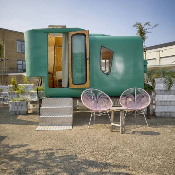 Uma equipe de designers e artistas holandeses transformaram um estacionamento em Roterdã, cidade conhecida por sua arquitetura incrível, em um acampamento cultural e sustentável. O lugar consiste em uma série de cabines arquitetônicas exclusivas, feitas de materiais e resíduos reciclados. Os hóspedes são convidados a ficar por um fim de semana ou por um período mais longo, enquanto também podem participar de atividades, como aulas de ioga, um retiro na cidade e um curso de vários dias sobre o design de pequenas casas.